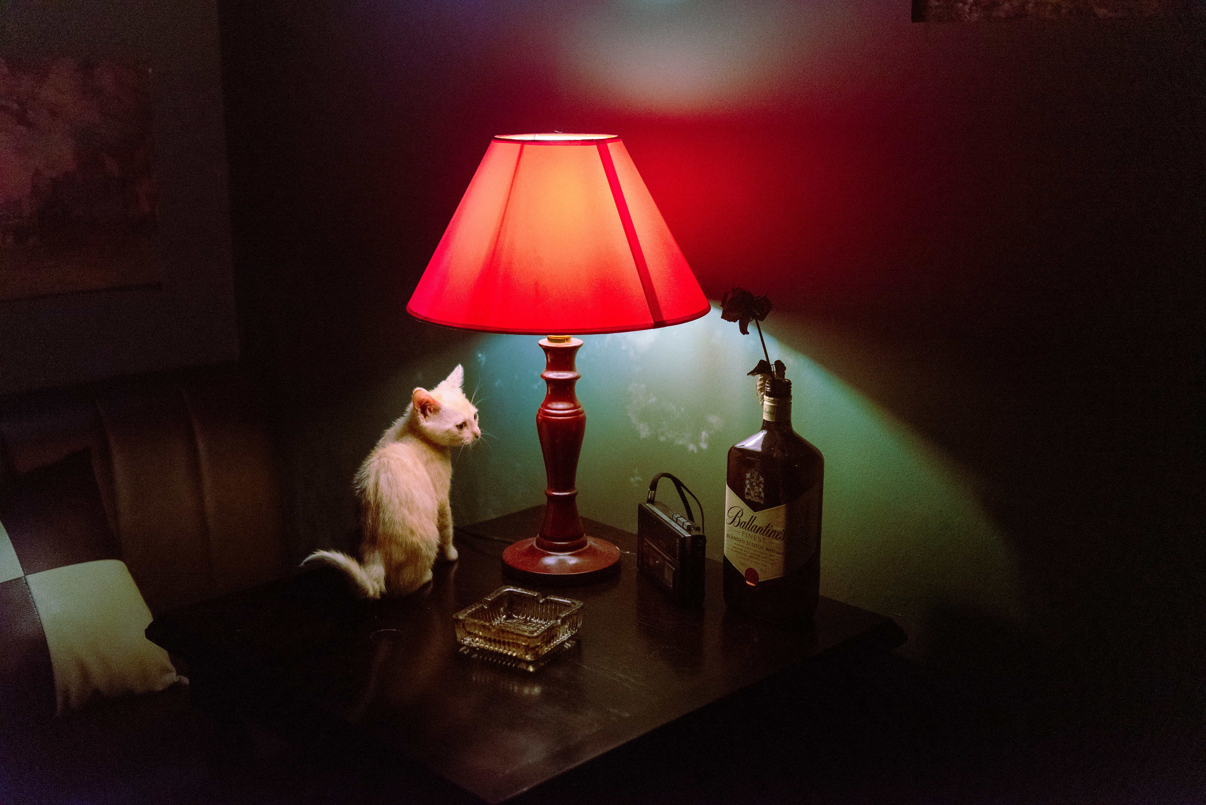 An orange cat sits sentinel under a red lamp, sharing late-night hours with solitary drinkers. When human connection feels too complicated, exhausting, or out of reach, the quiet companionship of an animal fulfils the most basic, urgent human instinct: the absolute refusal to be completely alone.